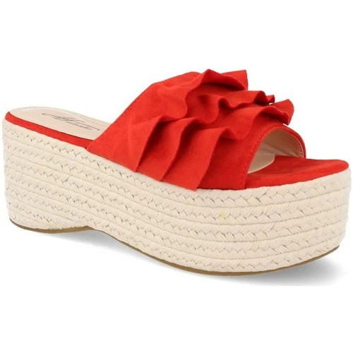 Sandale à plateforme pour femmes avec semelle en jute et bordure à volants. Hauteur: 5 cm Printemps été 2019